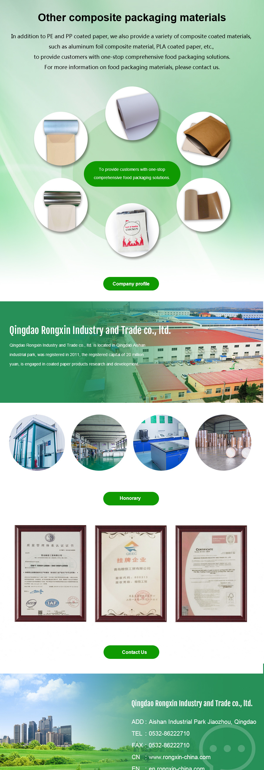 We also provide a variety of composite coating products of other materials, such as PLA coating, aluminum foil composite, and other paper composite materials, and provide one-stop comprehensive food packaging solutions.